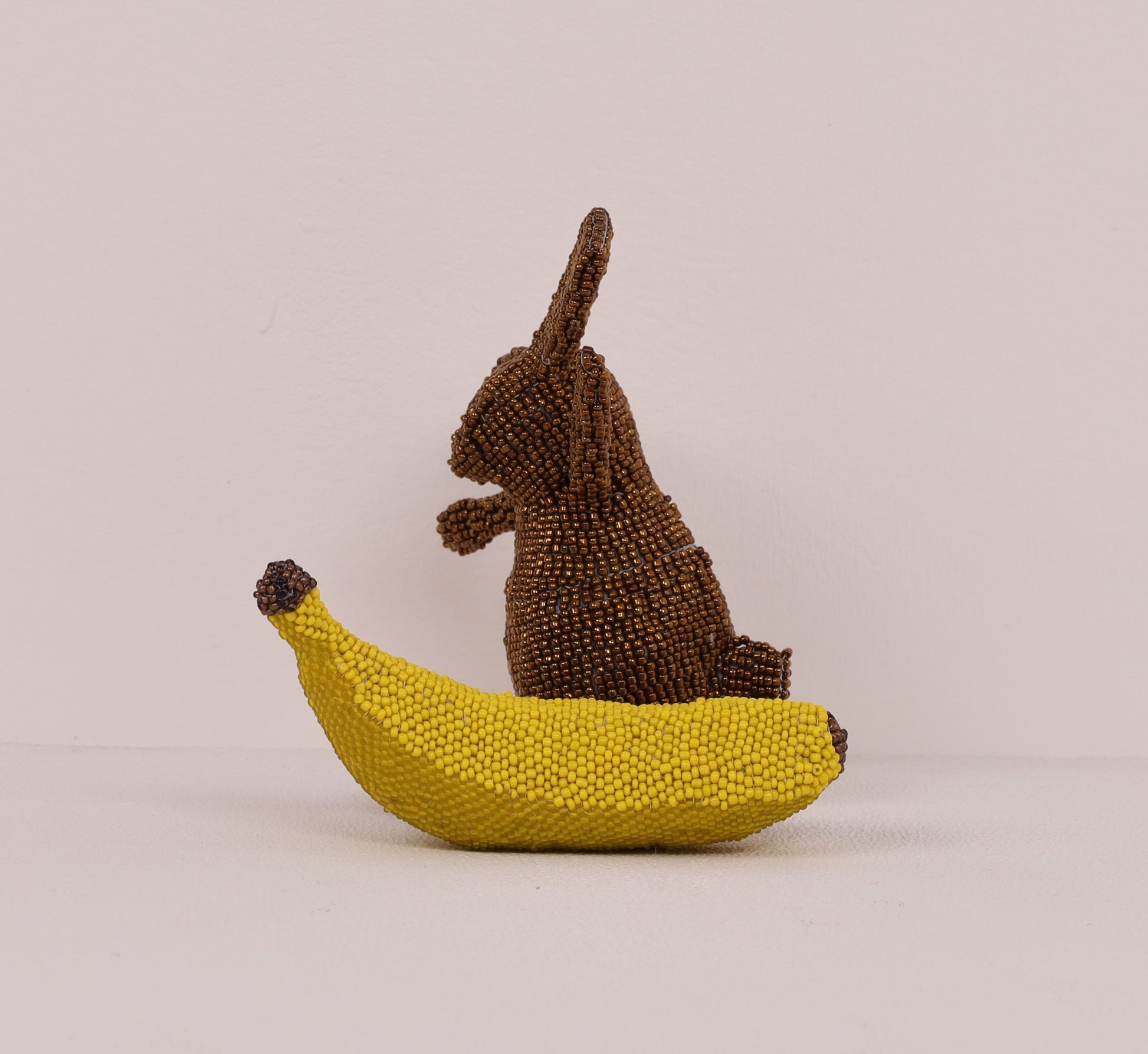 Madinese Lenata's timid beaded bunny art is offered in a solid mono-tone.
