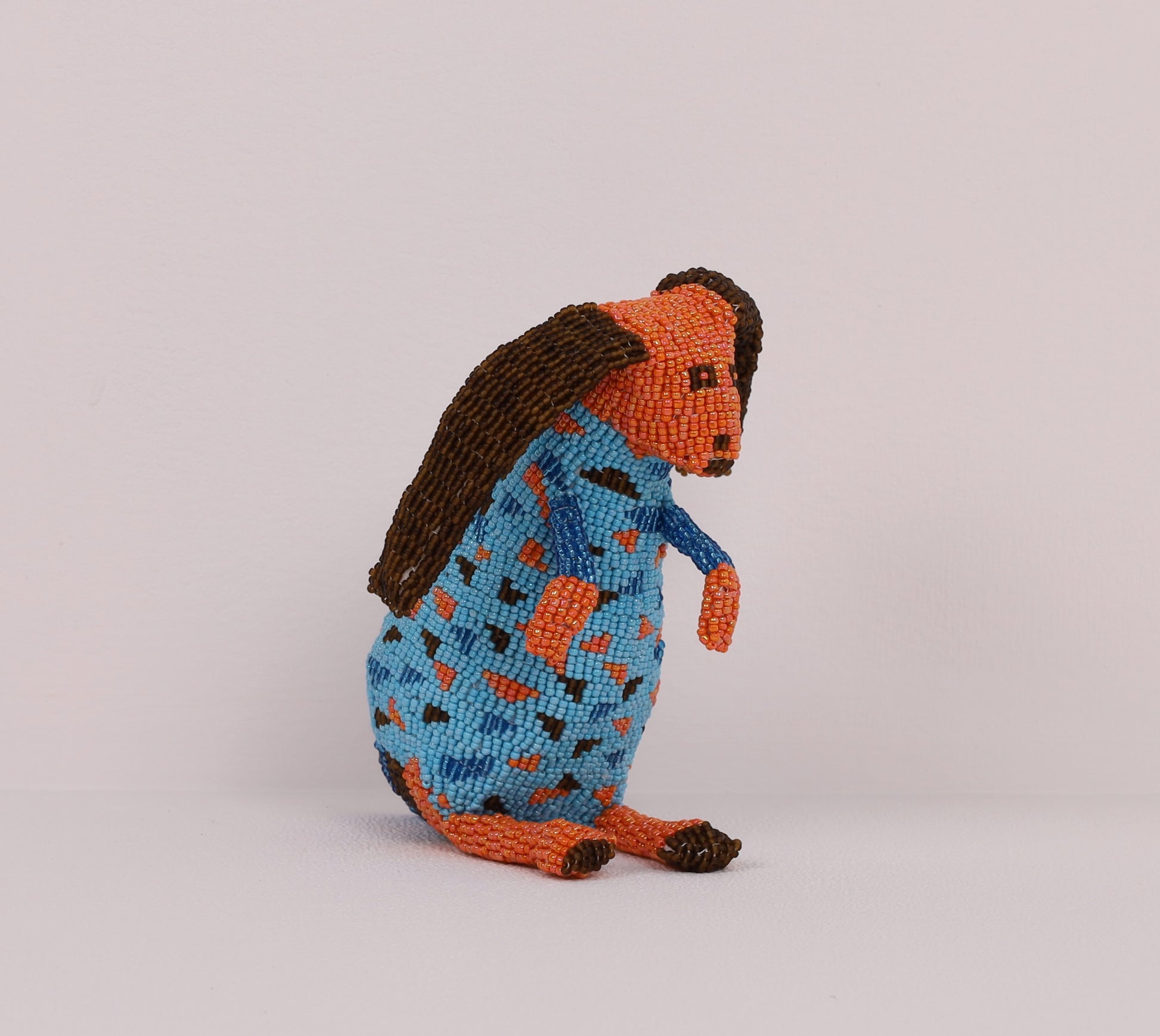 Fundiswa Kupa's timid beaded bunny art is designed in a ditsy pattern offered in a multi-colour palette.