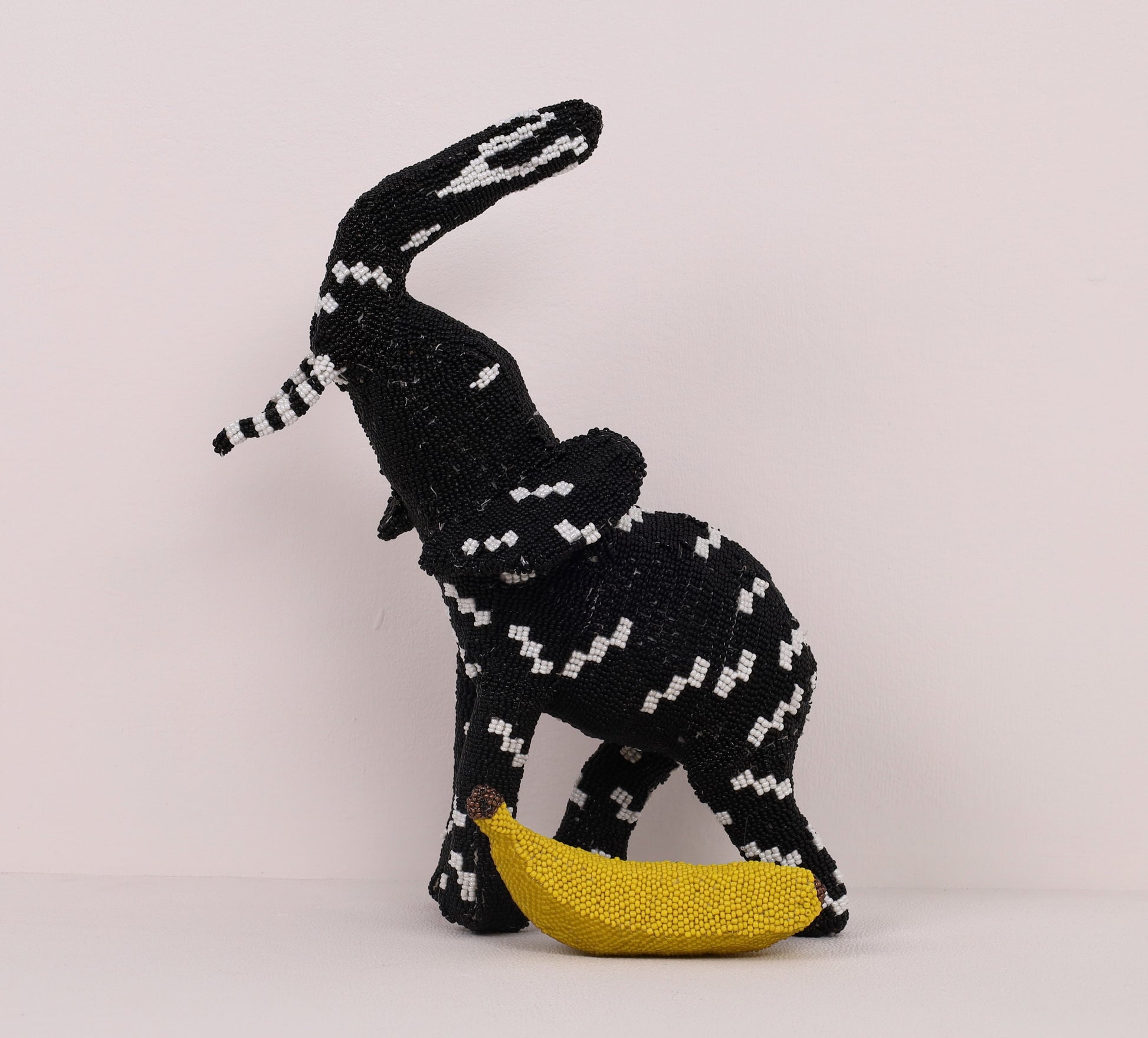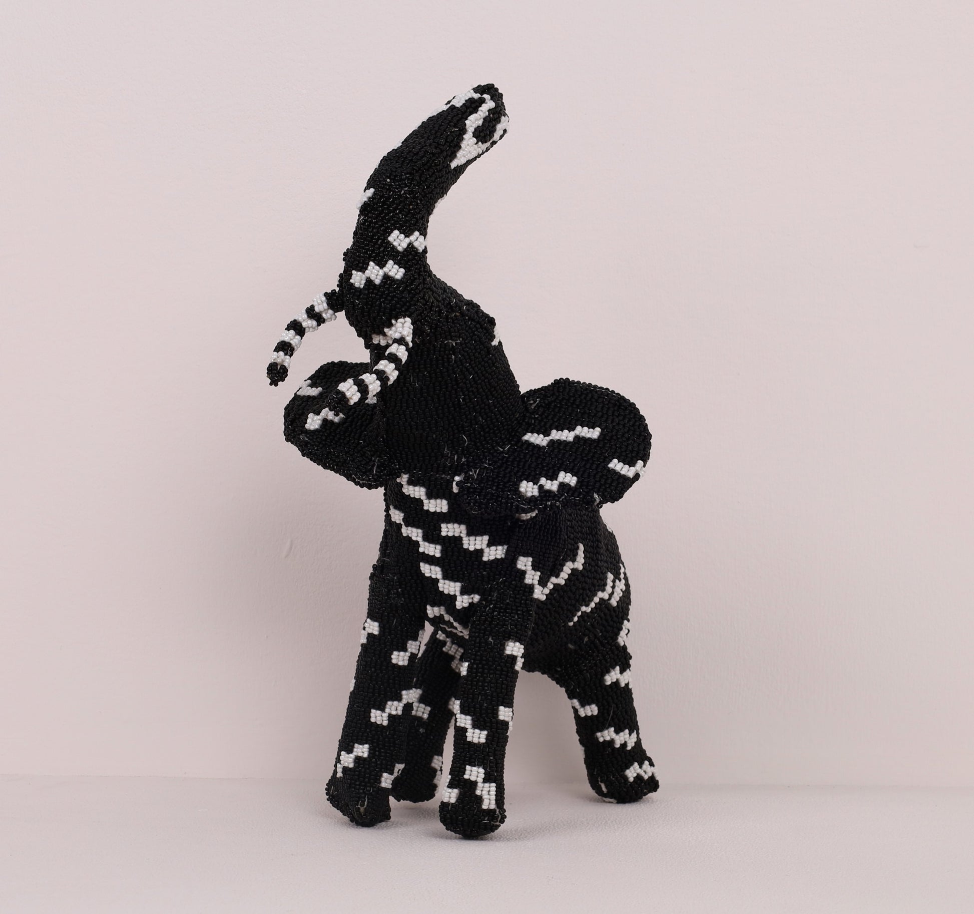 Bongiwe Mafilika's curious beaded elephant art is designed in a geometric pattern offered in a 2-toned colourway.