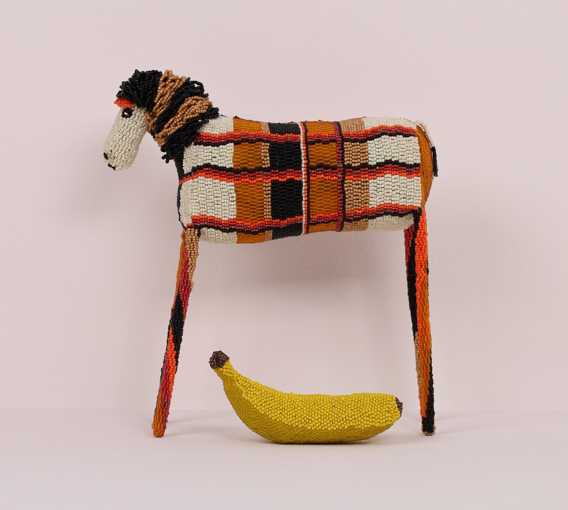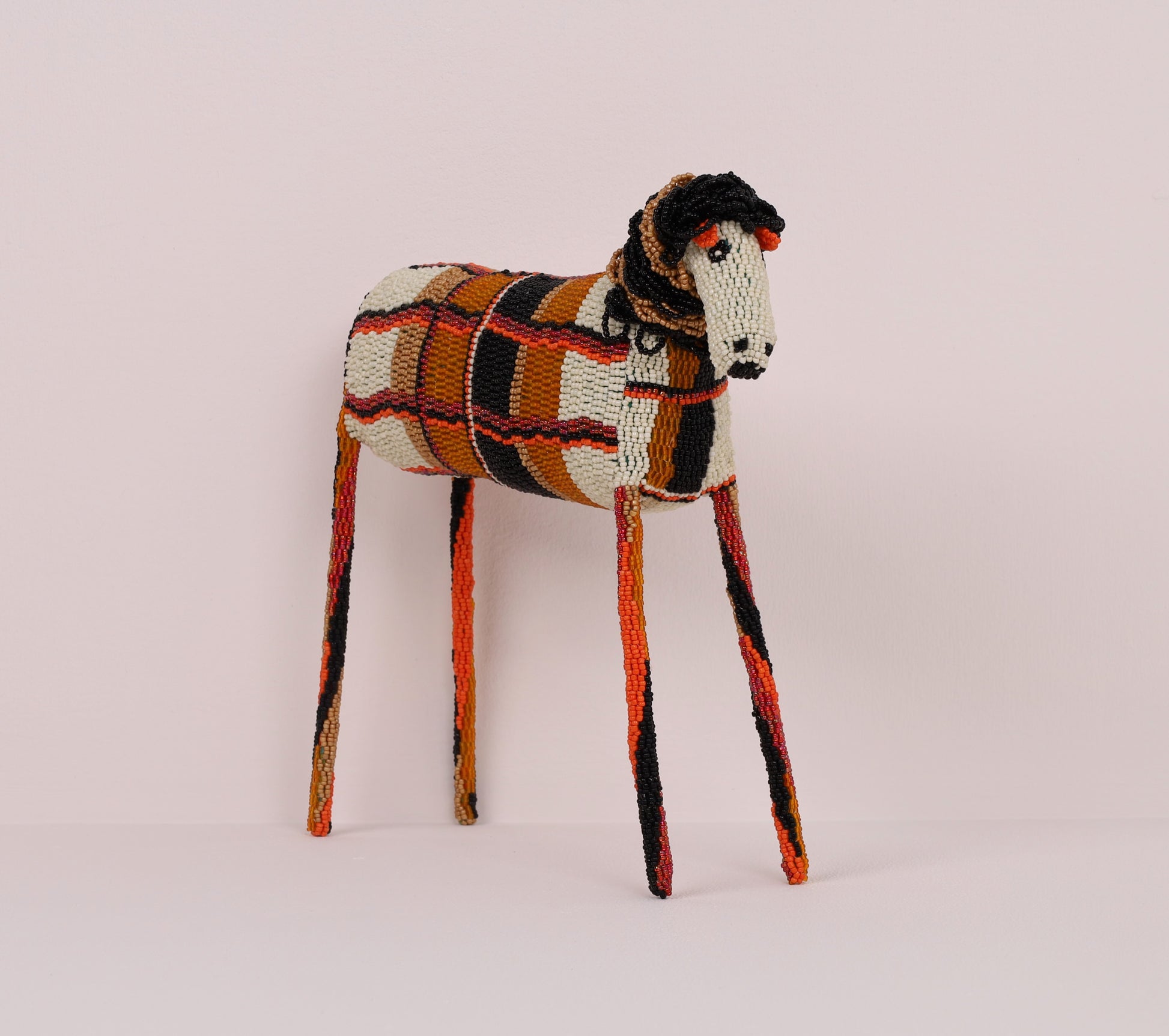Nompucuko's timid (iconic long-legged) beaded lion art is designed in a geometric pattern offered in a multi-colour palette.