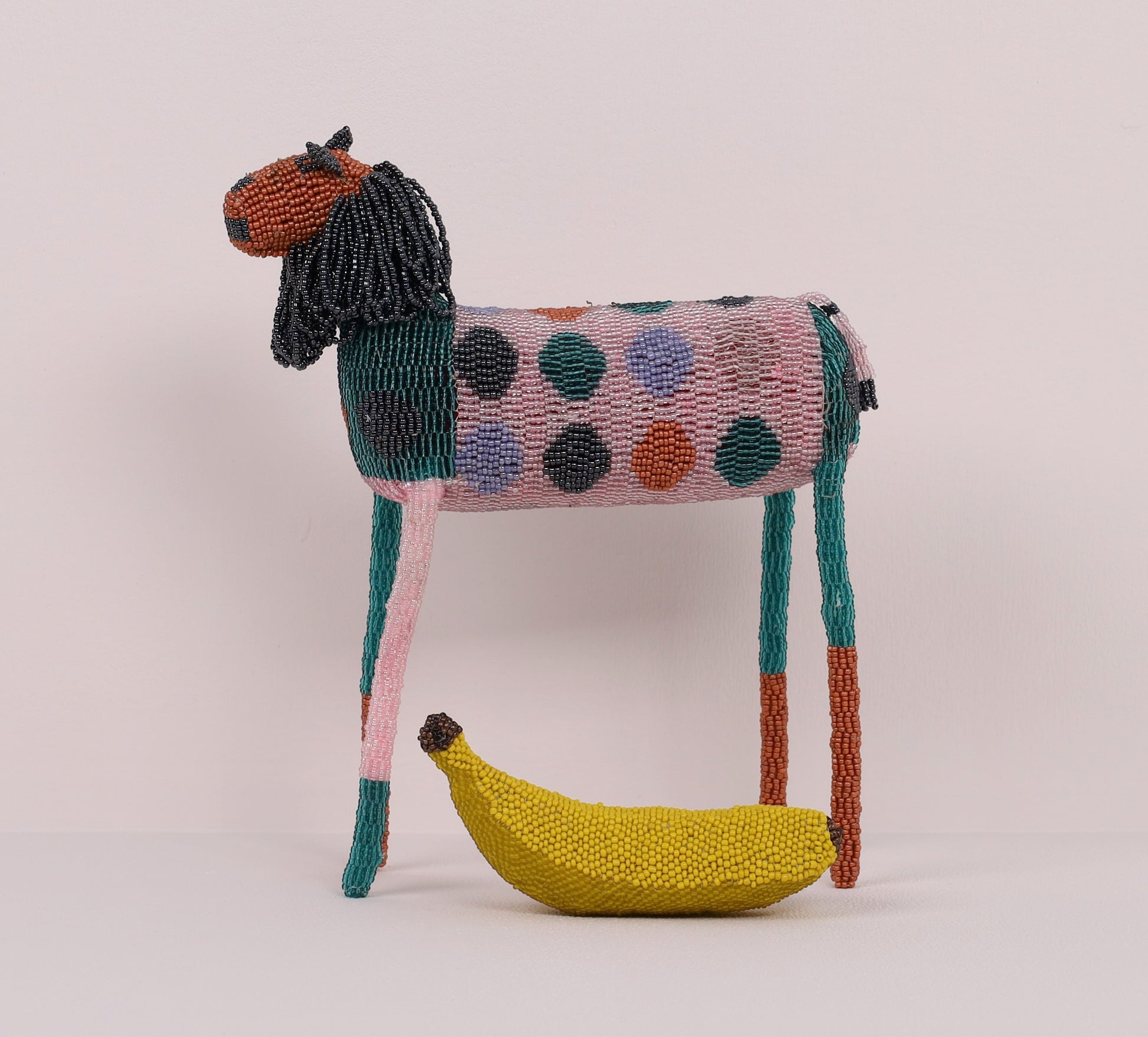 Ncameka Dladlu's striking (iconic long-legged) beaded lion art is designed in a geometric pattern offered in a multi-colour palette.