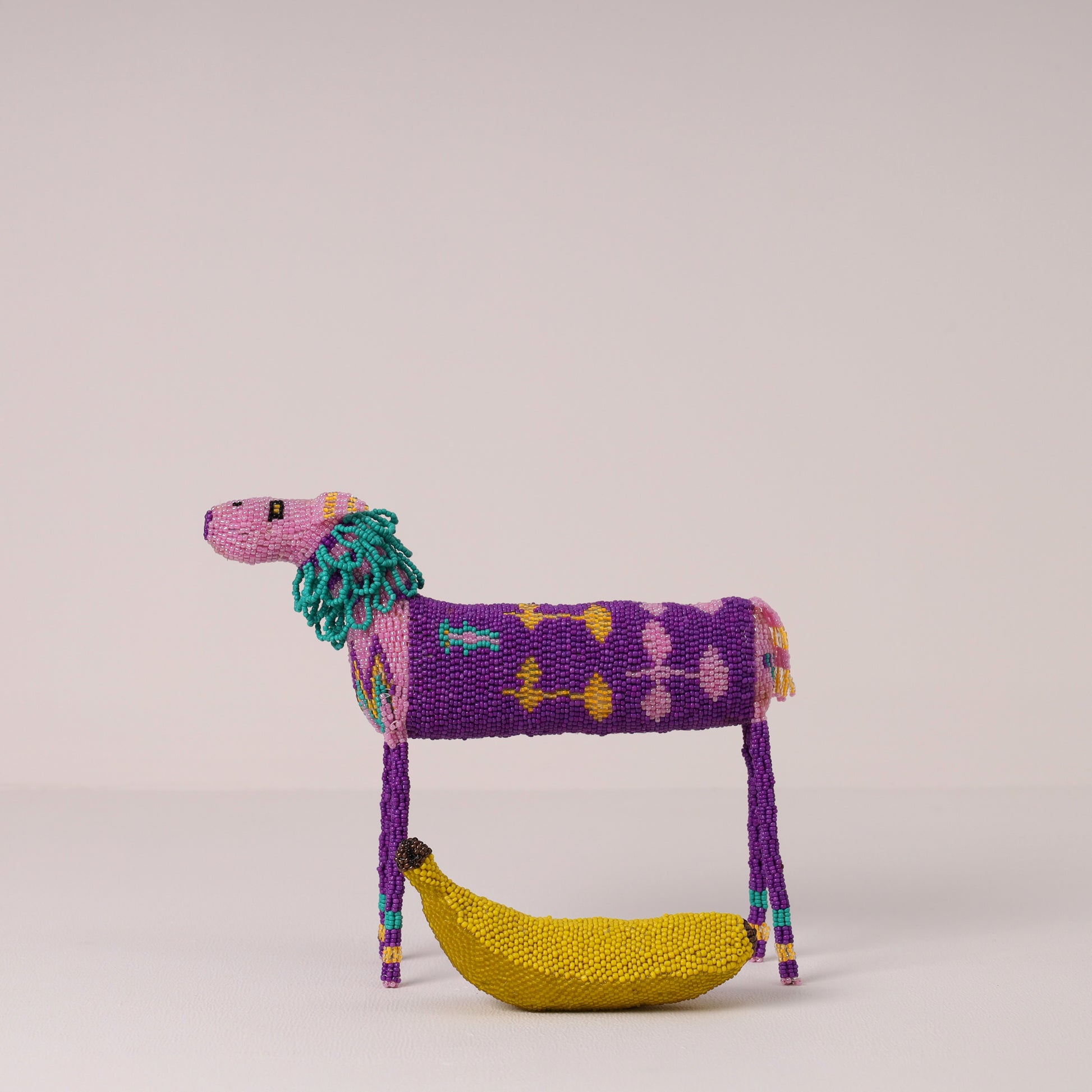 Mzamo's curious (iconic long-legged) beaded lion art is designed in a ditsy pattern offered in a multi-colour palette.