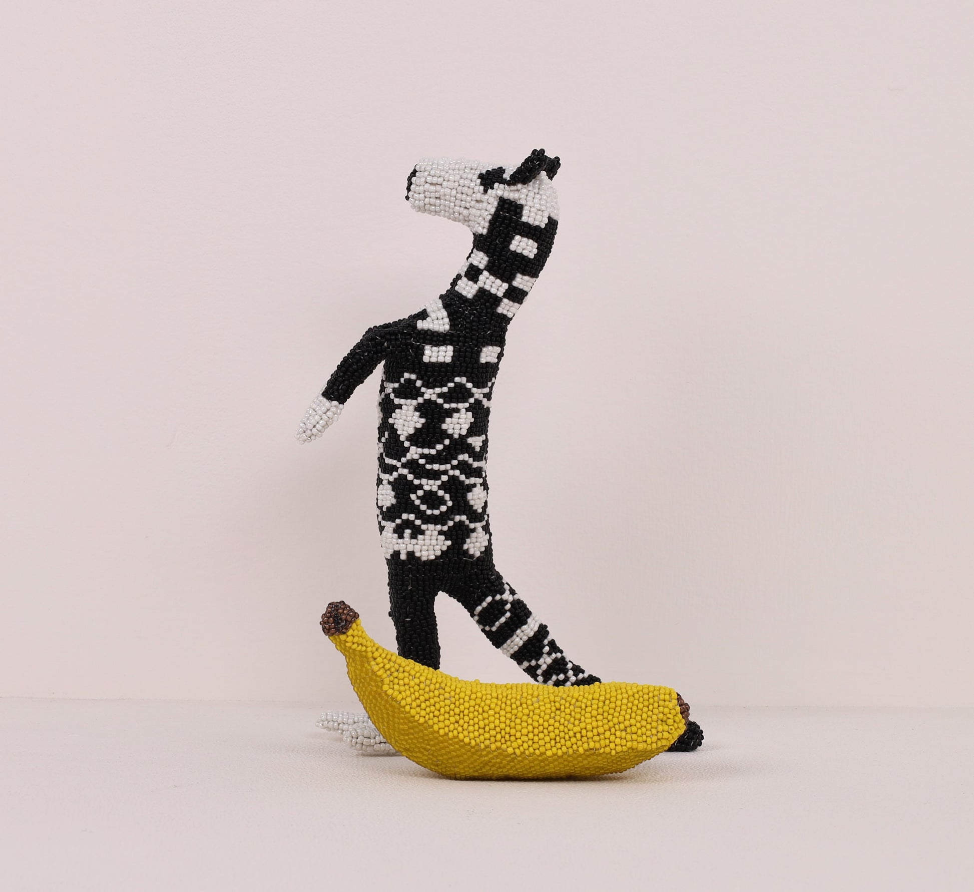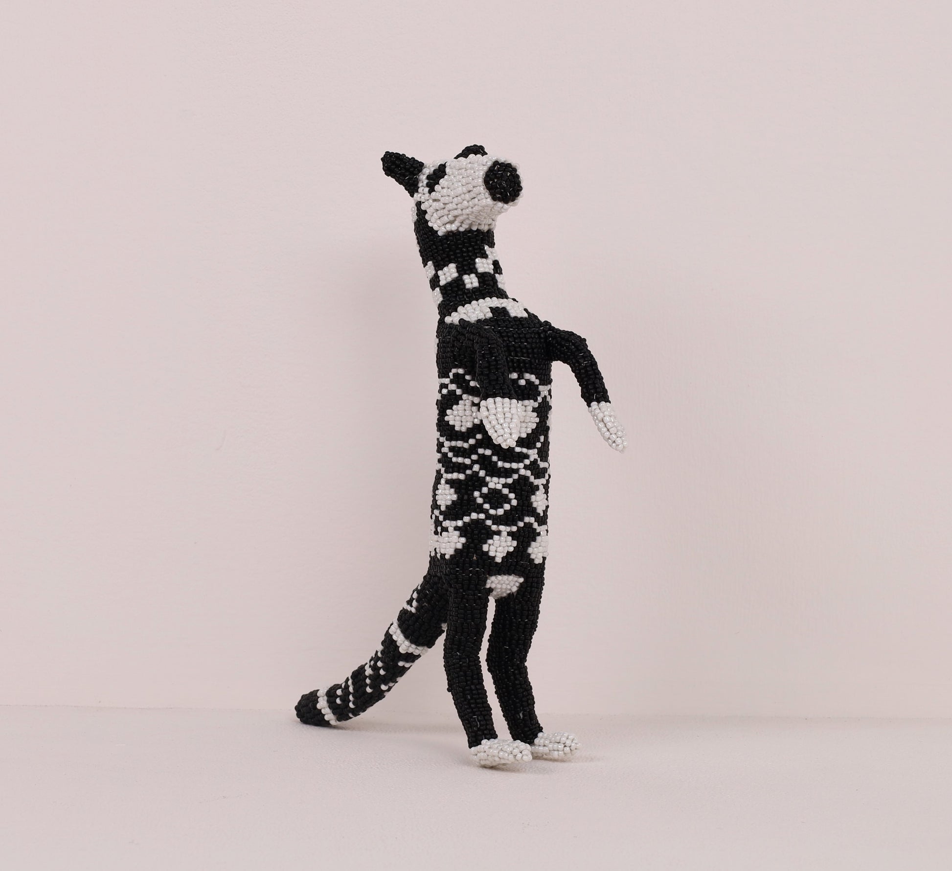 Andisiwe Nkaule's curious beaded meerkat art is designed in ditsy pattern offered in a 2-toned colourway.