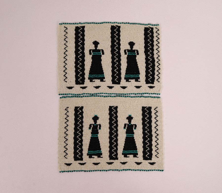 The Monkeybiz beaded placemat set telling different stories, life in the rural area, life in the city and everyday commentaries.