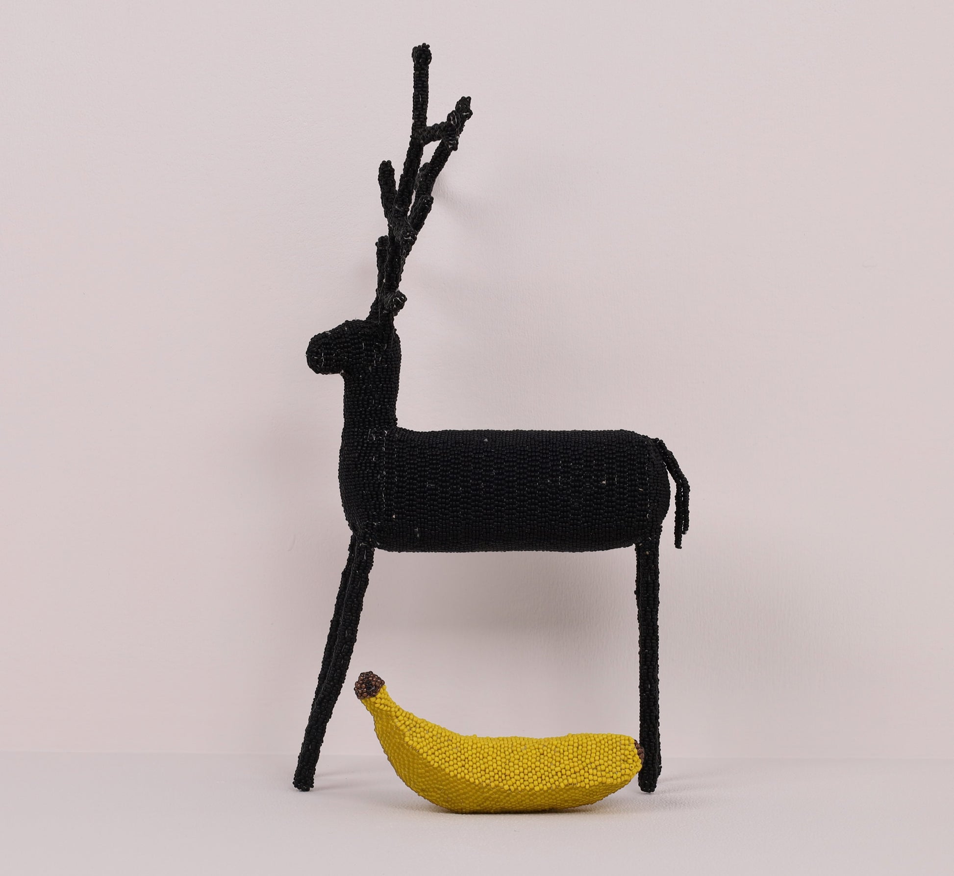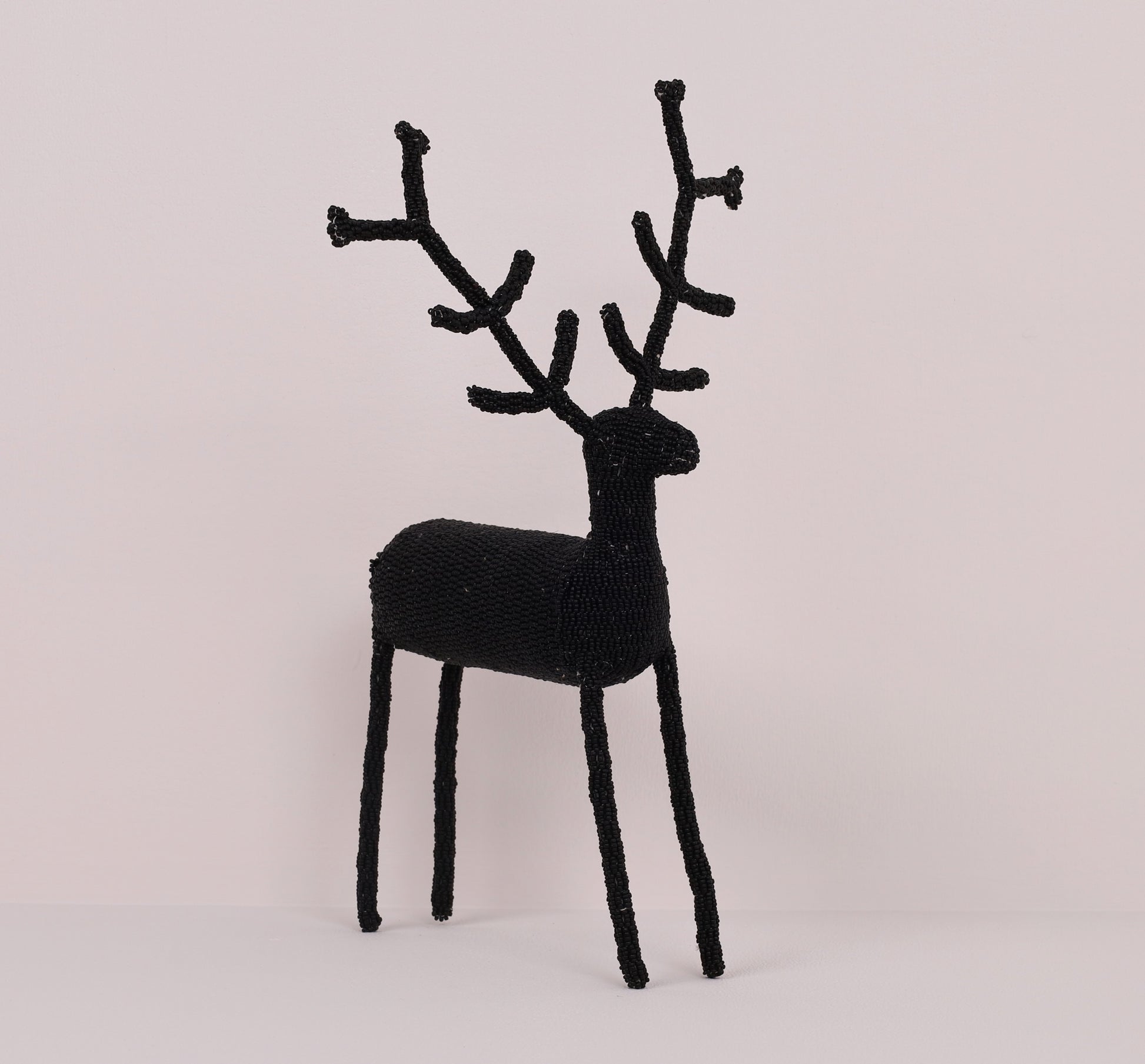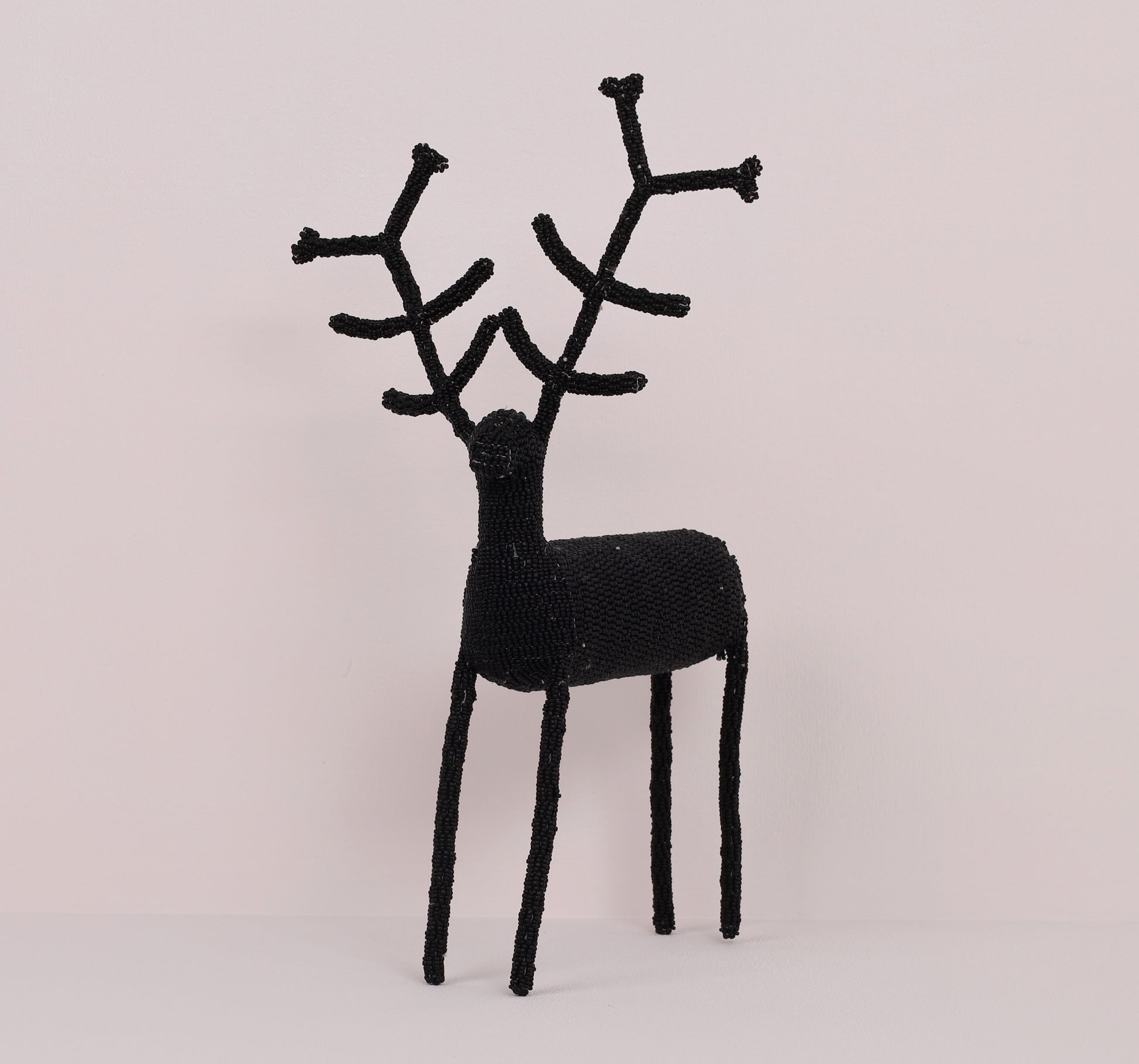 Nomvula Gaba's striking (iconic long-legged) beaded reindeer art is offered in a solid mono-tone.