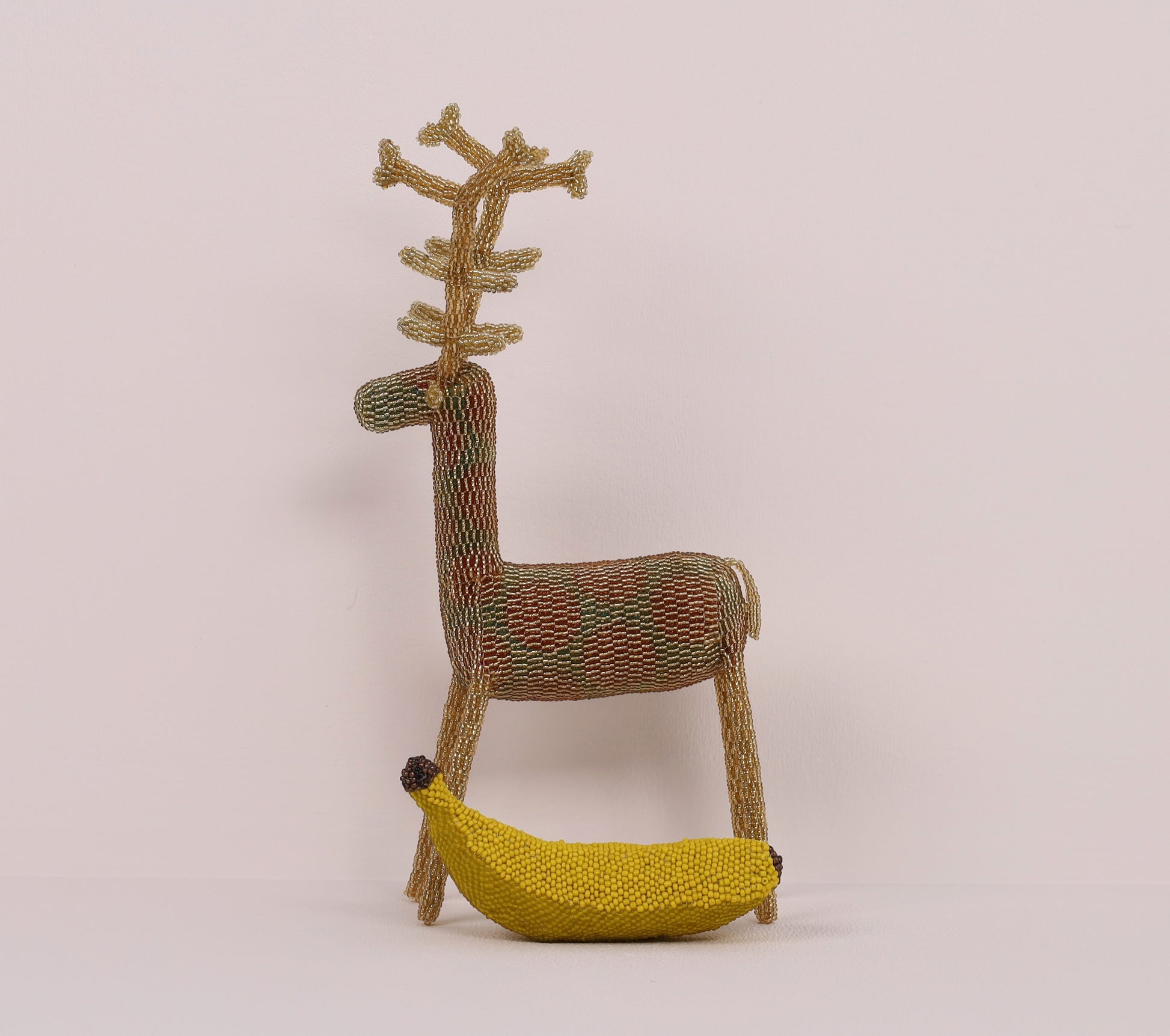 Sinako Hashibi's curious (iconic long-legged) beaded reindeer art is offered in a solid mono-tone.